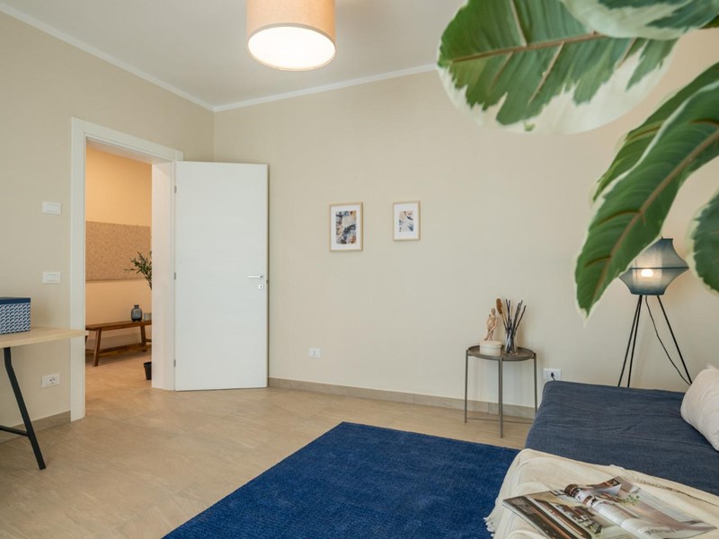 Gli spazi di questo appartamento sono molto versatili, infatti è possibile ricavare una terza camera matrimoniale unendo il soggiorno ed angolo cottura in un unico vano.