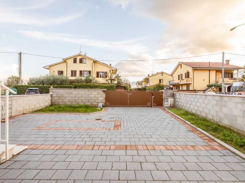 Lo spazio esterno permette di parcheggiare 2 auto all'interno della proprietà, poter installare una casina in legno ma allo stesso tempo permette di poter essere vissuto per momenti di relax.