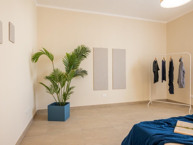 Ingresso, soggiorno con angolo, 2 bagni, disimpegno notte, 3 camere matrimoniali e ripostiglio lavanderia molto ampio.