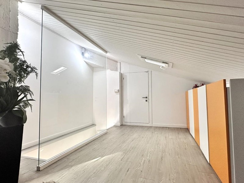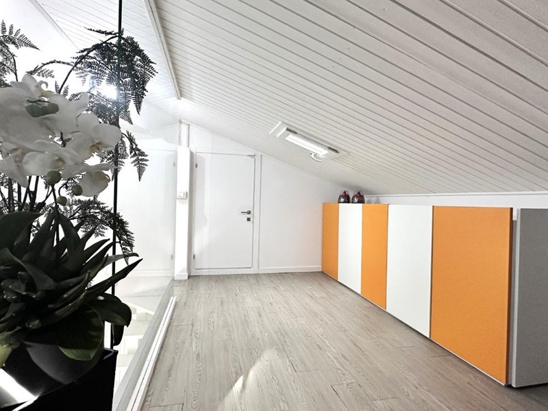 Nella zona giorno, troviamo una bellissima scala sospesa che ci conduce ad un ampio spazio di possibilità; silenzio ovattato dove poter realizzare il tuo “altrove” (terza camera, studio, giardino d'inverno).