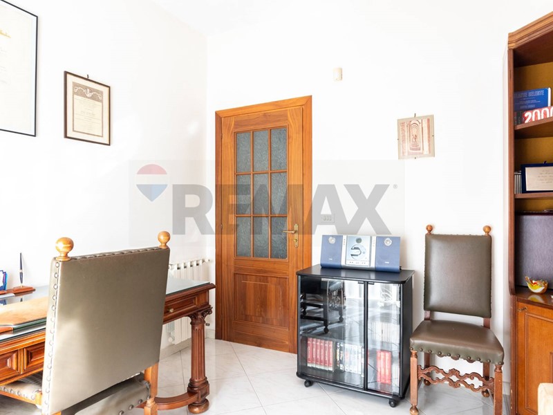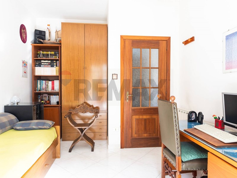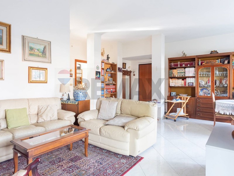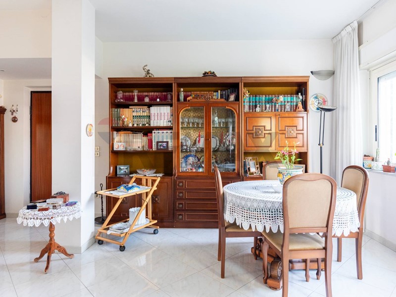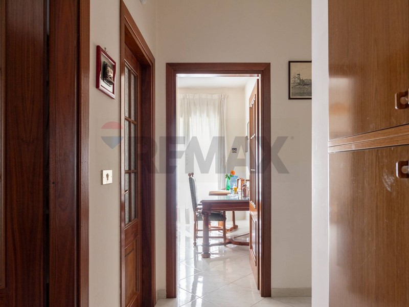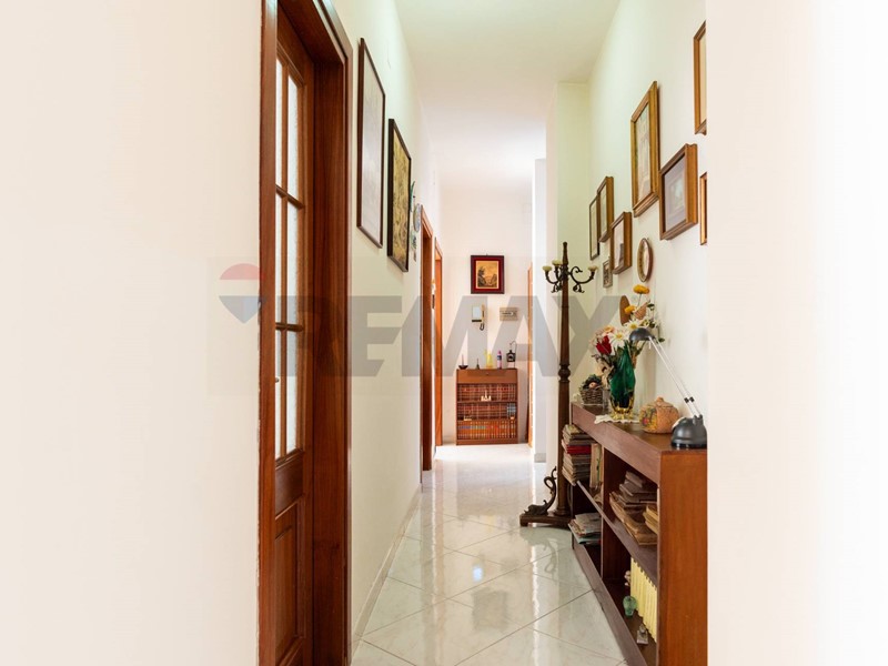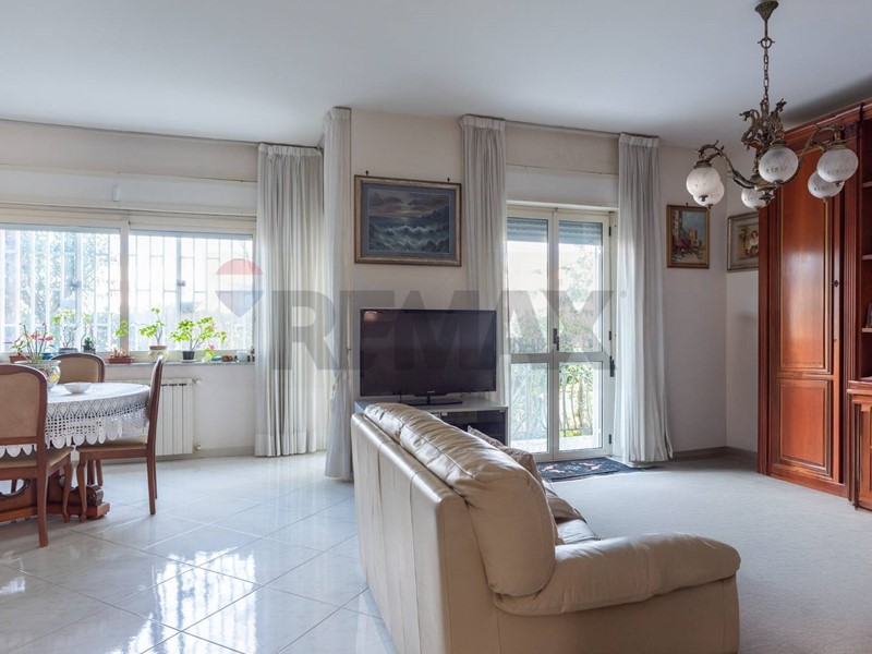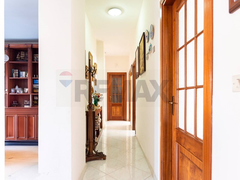 Dal cortile condominiale, tramite una rampa, si giunge direttamente allappartamento, e dallingresso si accede al salone doppio, dove vi è la zona soggiorno con 2 balconi, per accedere al terrazzo ed al giardino, ed una finestra. Dal corridoio laterale si accede alle 3 camere da letto, alla cucina abitabile, ai 2 bagni ed al ripostiglio.