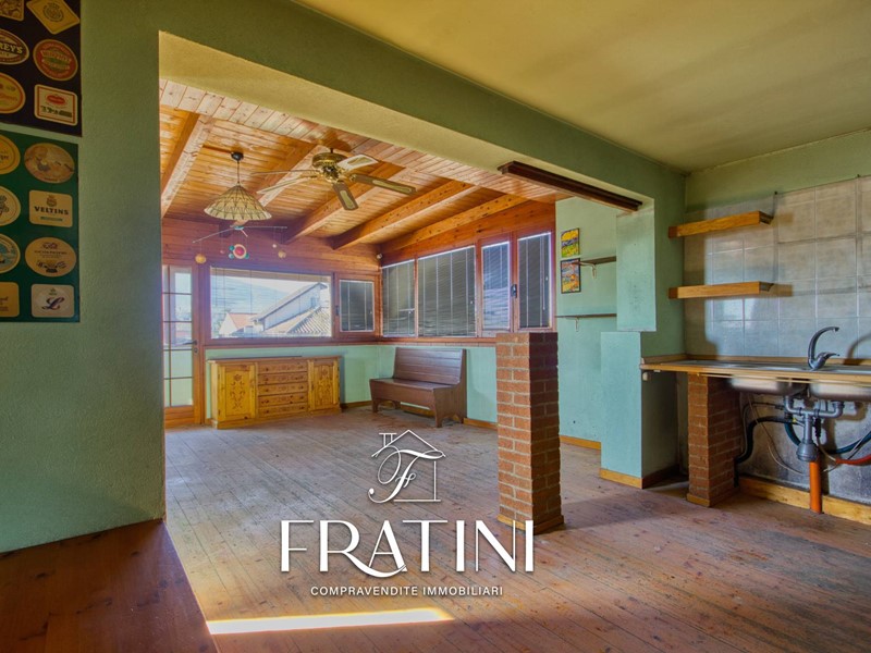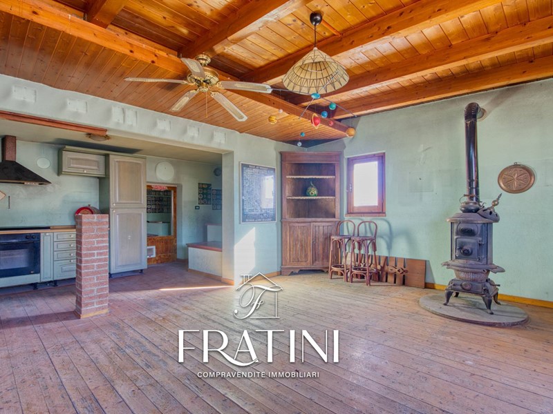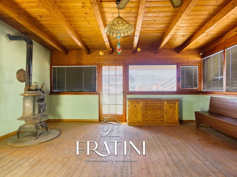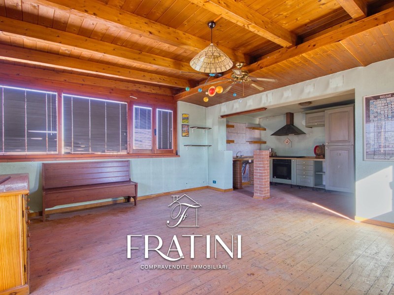 Una scala interna conduce al terzo piano, dedicato alla zona giorno. Lambiente è particolarmente caratteristico e accogliente, con soggiorno e angolo cottura organizzati in un unico spazio ampio e luminoso, grazie alle finestre perimetrali dotate di infissi in legno con doppio vetro. La zona giorno si distingue per uno stile caldo e originale che richiama latmosfera di un pub, impreziosito dalla presenza di una stufa a legna. Da questo livello si accede inoltre a un terrazzino coperto, ideale per momenti di relax, e alla soffitta attualmente utilizzata come ripostiglio. La pavimentazione del piano superiore è interamente in legno.
