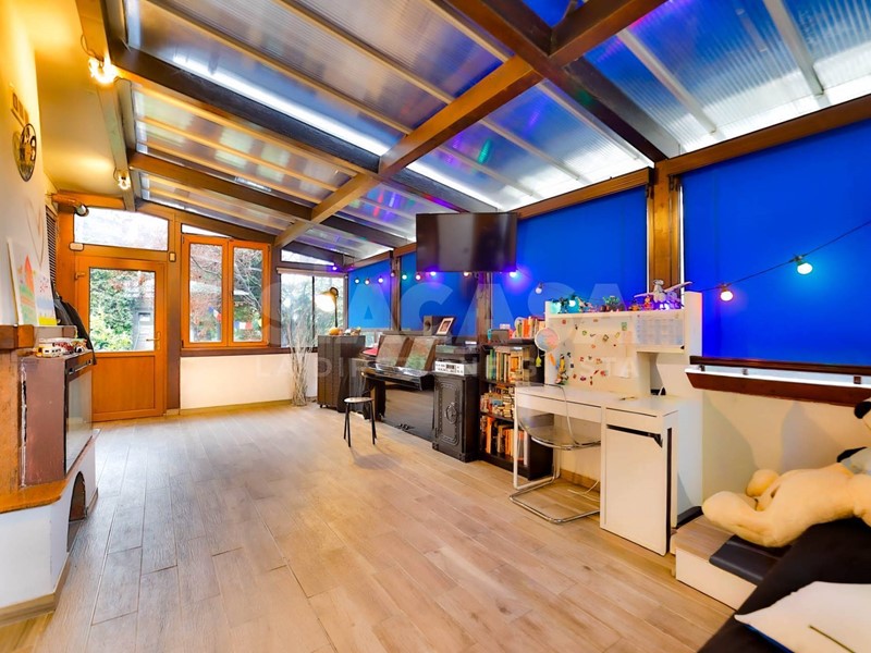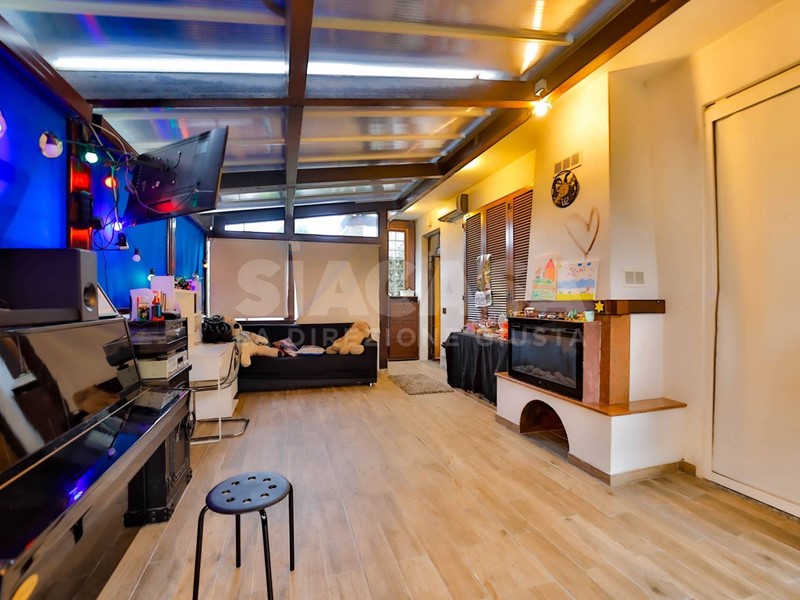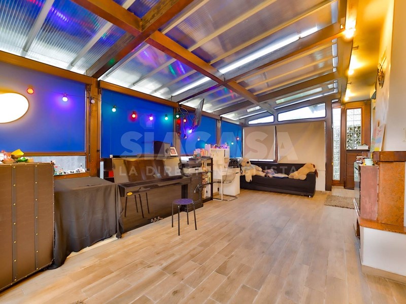 Adiacente alla zona giorno si sviluppa lampio portico coperto di 56 mq, completamente chiuso a veranda: uno spazio straordinariamente versatile, ideale come living aggiuntivo, zona relax o ambiente conviviale da vivere in ogni stagione. Completa il piano una porzione di giardino privato di 40 mq, perfetto per godere di momenti allaperto in totale riservatezza.