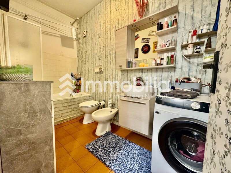 Il bagno, funzionale e ben organizzato, è affiancato da un pratico ripostiglio, sempre prezioso per mantenere ordine e organizzazione.