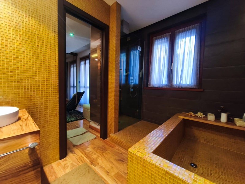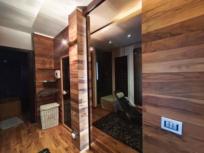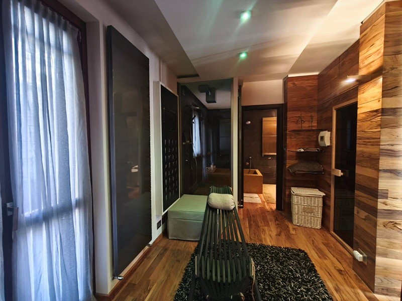 Sul retro dellappartamento si sviluppa una suggestiva zona dedicata al benessere composta da: