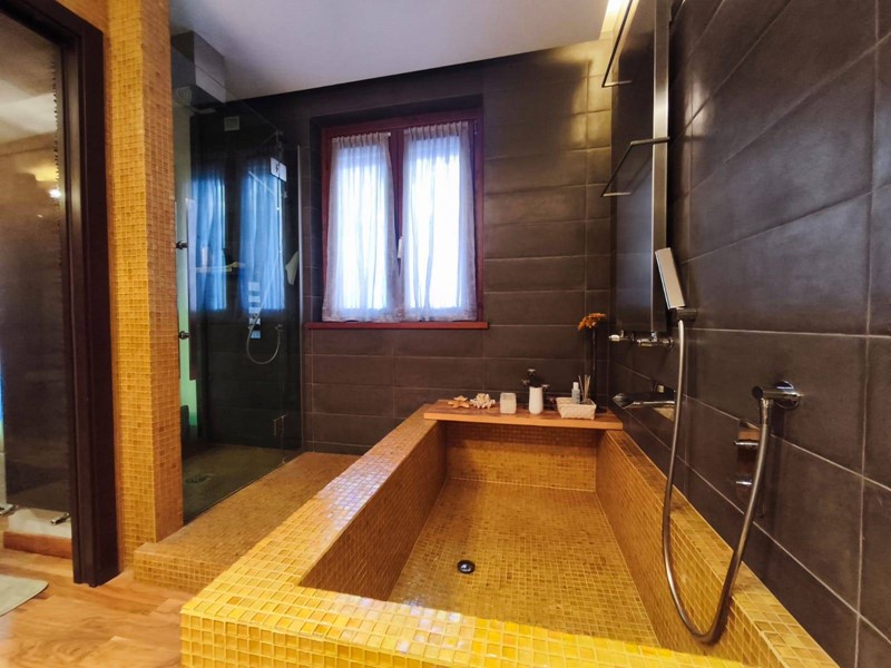 bagno finestrato con doccia idromassaggio emozionale e grande vasca in muratura;