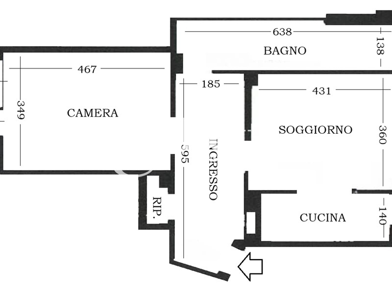 COMPOSIZIONE INTERNA: doppia esposizione est/ ovest, ampio ingresso, soggiorno con angolo cottura a vista, ampia camera da letto, servizio, ampio ripostiglio, due balconi, cantina al piano seminterrato;
