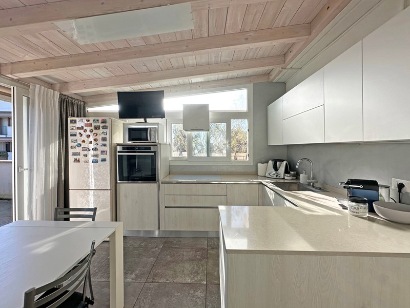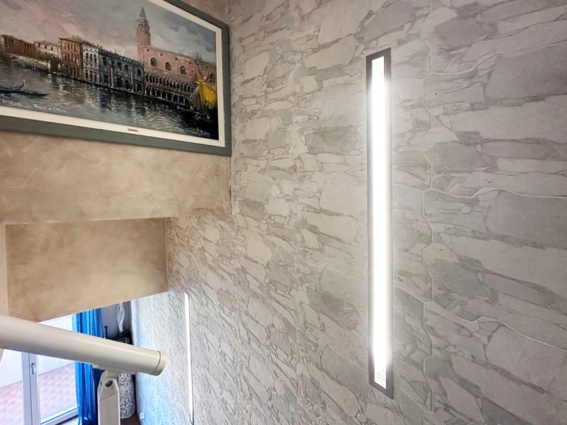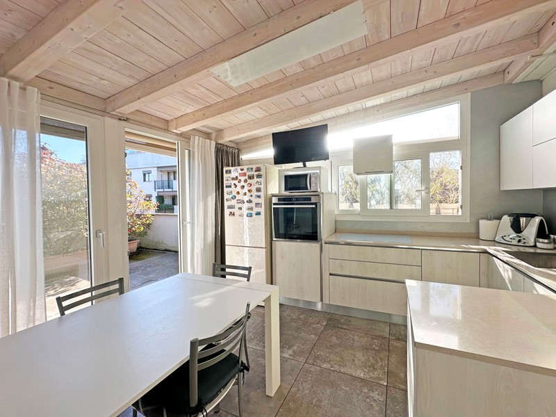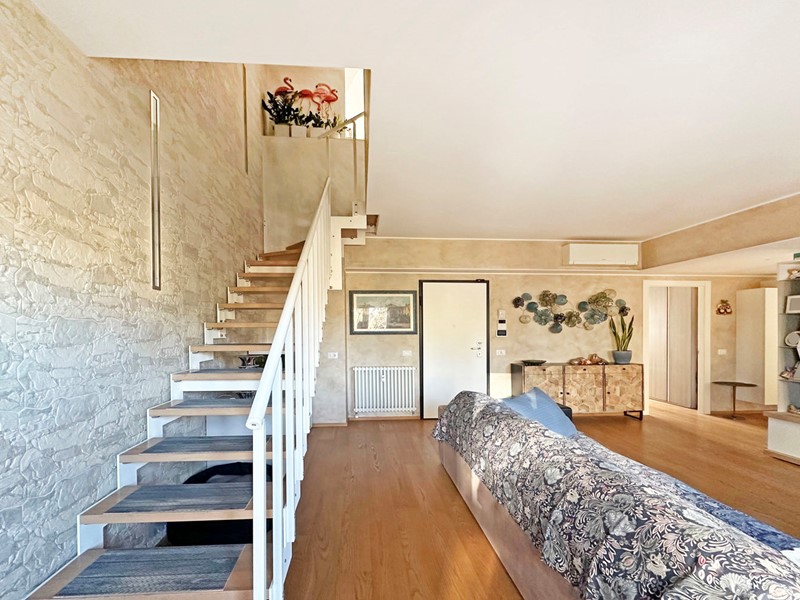 La vera chicca si scopre salendo la scala interna situata nel soggiorno, impreziosita da un'elegante illuminazione a LED a parete. Al piano superiore si apre uno spazio esclusivo dove protagonista è la splendida cucina abitabile, moderna e finemente rifinita, pensata per rendere ogni pranzo e cena un'esperienza di comfort e convivialità. Completa il livello un terzo bagno finestrato.
