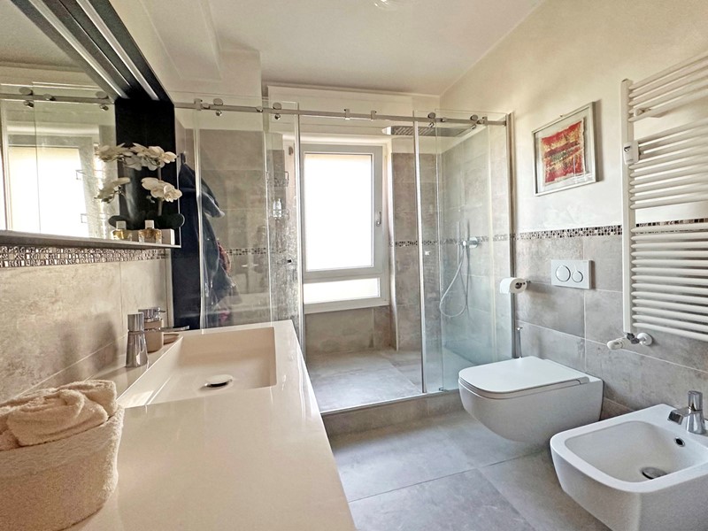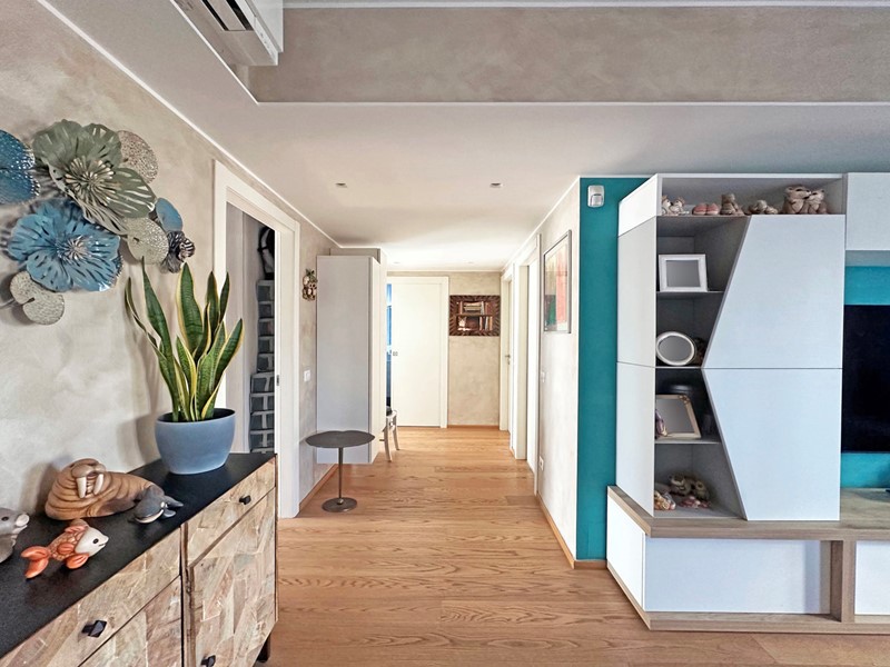 A completare questo quadro di assoluta qualità troviamo finiture interne di pregio, studiate per garantire comfort, estetica e funzionalità. La pavimentazione in raffinato parquet regala continuità ed eleganza agli ambienti, rendendo ogni passo un piacevole abbraccio di calore. Nei servizi troviamo gres porcellanato di ottima fattura, scelto per coniugare design e praticità. Gli infissi in triplo vetro bicolore assicurano un eccellente isolamento termico e acustico, contribuendo in modo significativo al benessere abitativo e all'efficienza energetica dell'immobile. Presente inoltre l'impianto di aria condizionata caldo/freddo, ideale per garantire il massimo comfort in ogni stagione dell'anno.