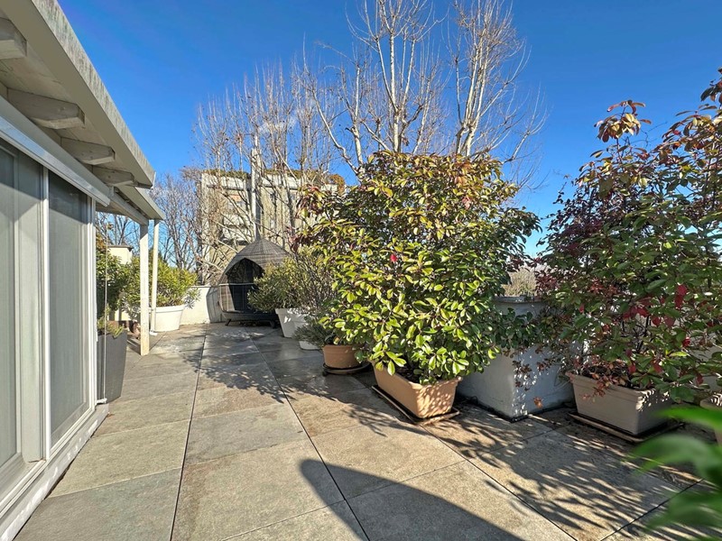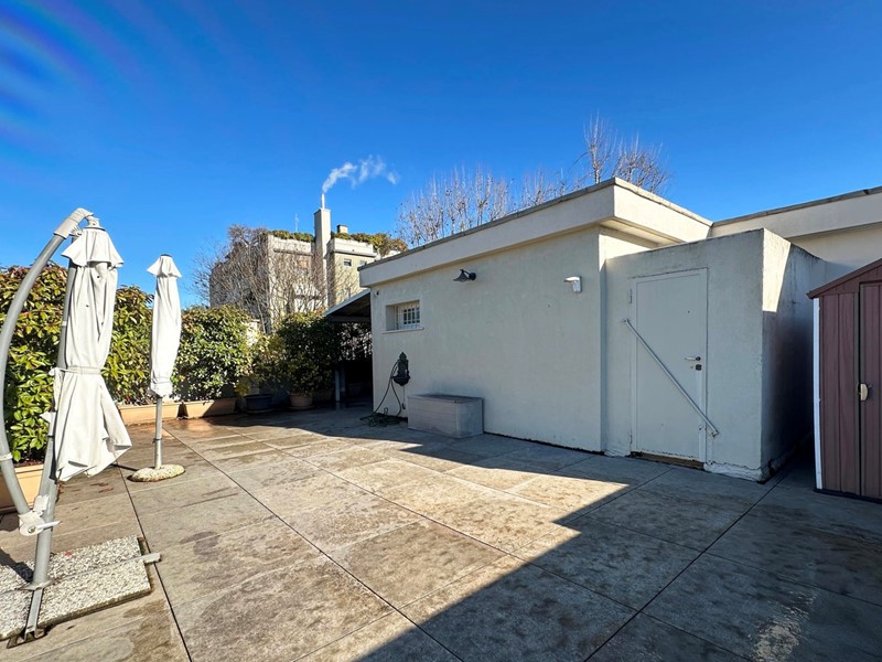 Proponiamo in vendita un attico meraviglioso dalle caratteristiche uniche nel suo genere, situato all'interno di un raffinato contesto condominiale circondato da un rigoglioso parco privato. Il verde curato e gli alberi ad alto fusto accompagnano piacevolmente lungo il percorso che conduce all'abitazione, offrendo un'atmosfera di quiete e riservatezza. Il complesso è dotato di campo da tennis interno e aree dedicate ai bambini, perfette per il tempo libero di tutta la famiglia.