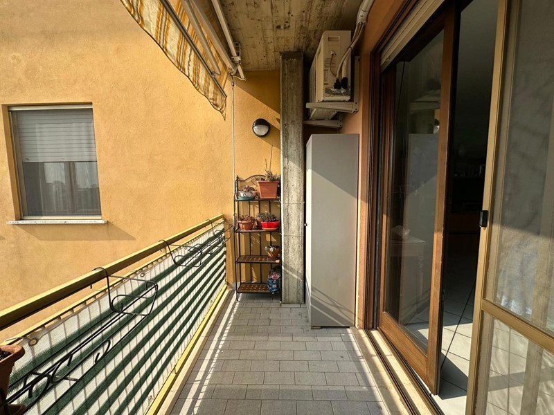 Ingresso nell'ampia zona giorno divisa tra living e cucina abitabile, e balcone coperto accessibile tramite ampia vetrata.