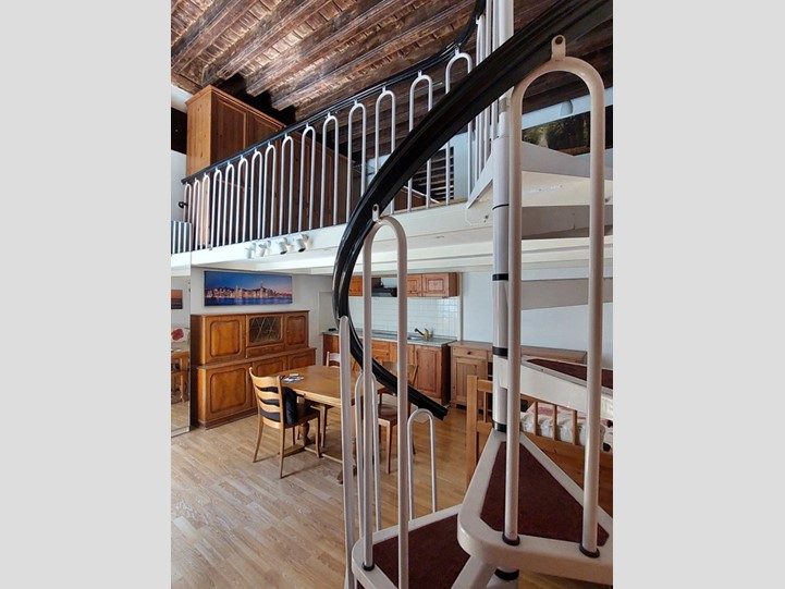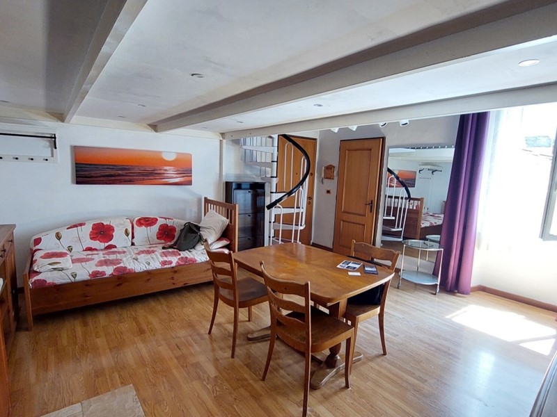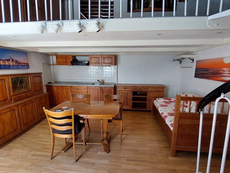 Composizione: Open space living con cucina a vista, camera soppalcata con splendide travi in legno a vista, bagno completo di ogni comfort. Venduto completamente arredato.
