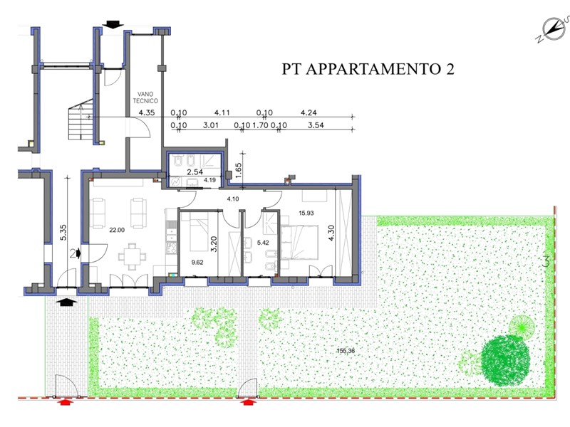 155 m² di giardino privato con predisposizione per luce e acqua