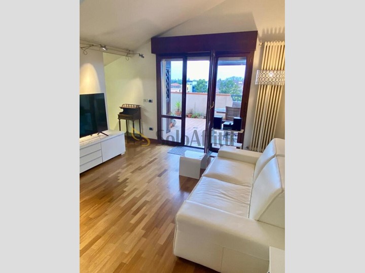 Disponibile per la locazione un'opportunità abitativa unica, in zona Via Covignano, situata al quinto ed ultimo piano di un condominio servito da ascensore: uno splendido attico di 50 mq, completamente arredato su misura da architetto.