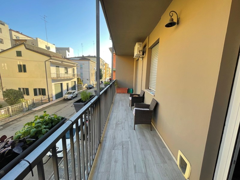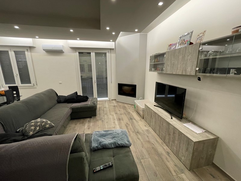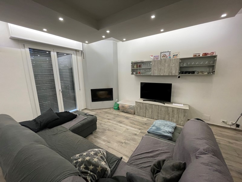 ingresso su ampio soggiorno con camino, cucina abitabile, balcone/terrazzo accessibile sia dalla sala che dalla cucina, disimpegno notte, tre camere da letto (di cui una con bagno privato) e secondo bagno finestrato.