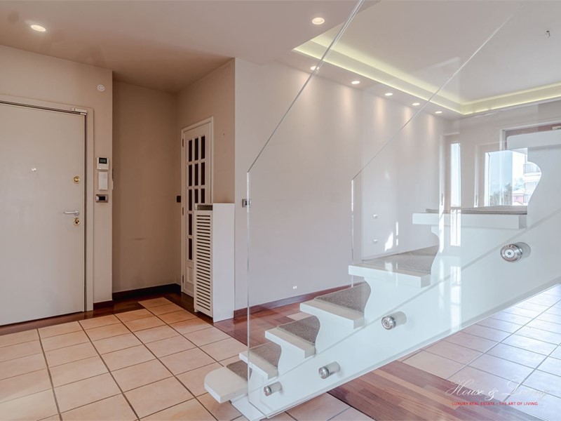 In zona comoda al centro ed a tutti i servizi cittadini proponiamo in palazzina signorile appartamento attico luminoso e panoramico. L'appartamento si sviluppa su due livelli, il primo livello si compone di ingresso su ampio salone che affaccia su un grande balcone panoramico, cucinotta con comoda sala pranzo adiacente provvista di ampio balcone panoramico con vista sull'arco alpino, una comoda camera matrimoniale, un bagno con doccia e due funzionali e razionali cabinette armadio. Il piano superiore collegato internamente da una comoda scala di design è parzialmente mansardato ed è accatastato come locale accessorio deposito ed è provvisto anche di ingresso indipendente; si compone di un comodo corridoio con armadiature a muro, due camere, un ampio bagno con vasca - doccia. E' presente inoltre un ulteriore ed ampio locale mansarda da ristrutturare collegabile all'appartamento. La proprietà si completa di un ampio box auto singolo ed di una cantina.\nVendita in collaborazione con Elisabetta Spallacci Immobiliare. - Maggiori Dettagli: Porta blindata