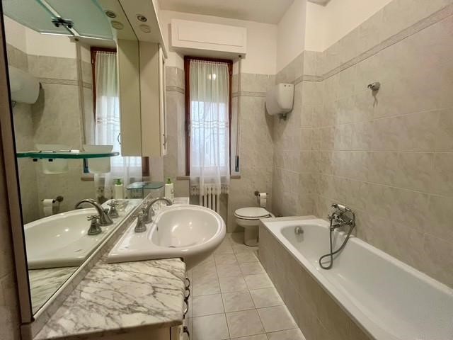 Appartamento con giardino in zona residenziale al piano primo di piccola palazzina. Composto internamente da ingresso, sala da pranzo con balcone, cucinotto, soggiorno con balcone, due camera matrimoniali, bagno finestrato. A piano terreno ampio resede utilizzabile come parcheggio per due auto, giardino privato di circa 100 mq, grande garage utilizzabile come taverna. Buone condizioni generali, impianti autonomi. Zona particolarmente silenziosa e vicina a tutti i principali servizi.
