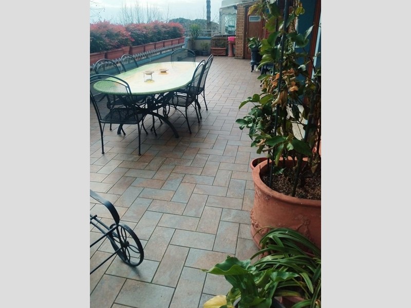 Esternamente terrazza di 100 mq con parte centrale rettangolare ampia e abitabile più ulteriore terrazzatura perimetrale.