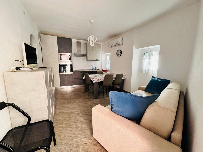 Diano Borello - A 6 km dalle spiagge. In centro paese, bilocale su due livelli, completamente ristrutturato con terrazzo vista mare.