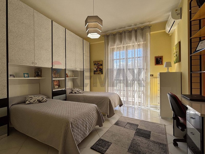 Tutti gli ambienti godono di luce naturale e ventilazione, tranne il doppio servizio predisposto con aereazione forzata. Le due camere da letto con affaccio su balcone sono di ampia quadratura, bagno padronale con vasca e finestrato, cucina spaziosa e abitabile con affaccio sul terrazzo e con finestre che la rendono molto luminosa. L' ingresso ampio ci conduce anche in un salone doppio pieno di luce , infine completano l' appartamento corridoio, cameretta ospiti e ripostiglio. Le rifiniture sono di buona qualità, pavimentazione a tappeto . Gli infissi si presentano in buone condizioni e sono in alluminio anodizzato con serrande esterne, l appartamento previsto di impianto di riscaldamento con piastre in ghisa, e installato al tetto troviamo l' impianto fotovoltaico.