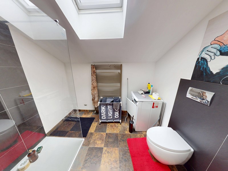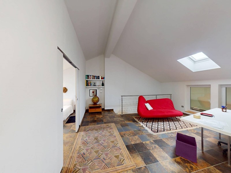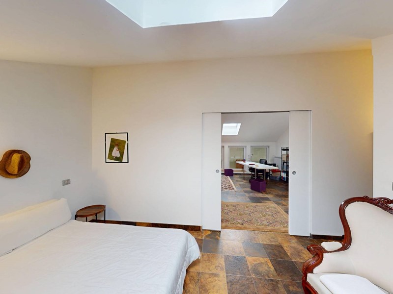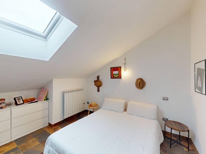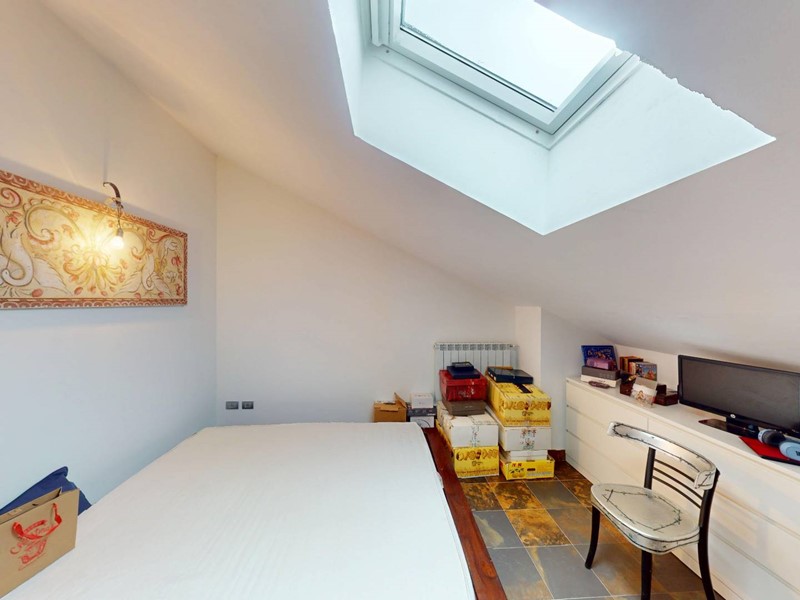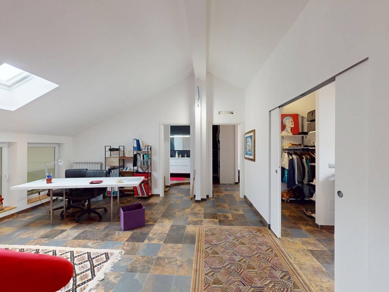 al secondo piano: secondo salotto con tre finestre ed un velux , due camere da letto matrimoniali con stanze armadio con rispettivi velux e bagno con doccia doppia.
