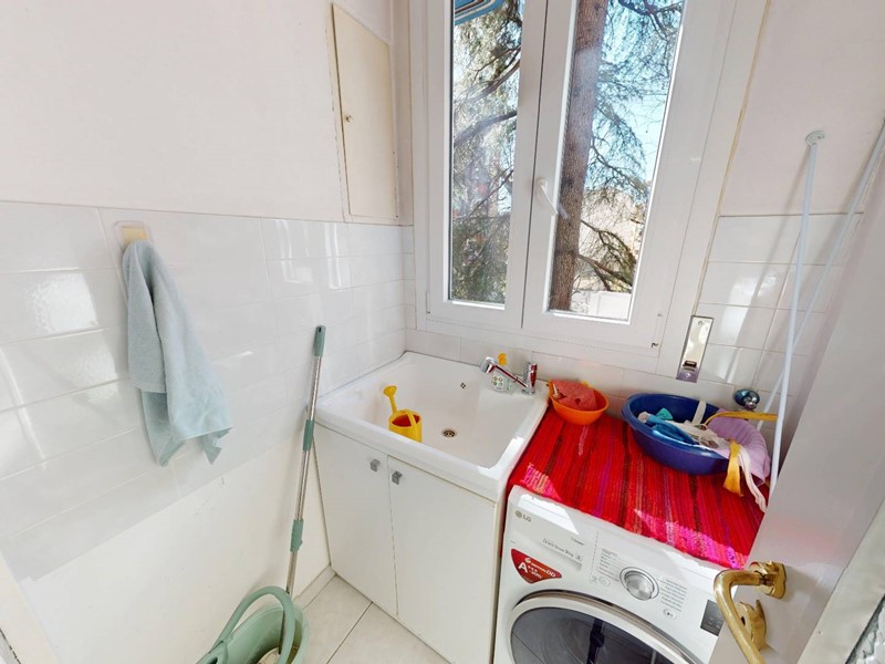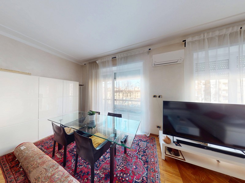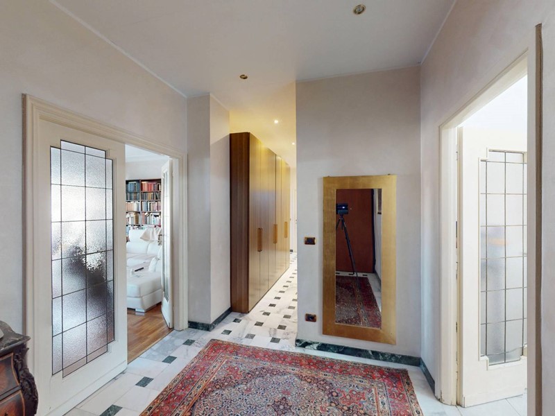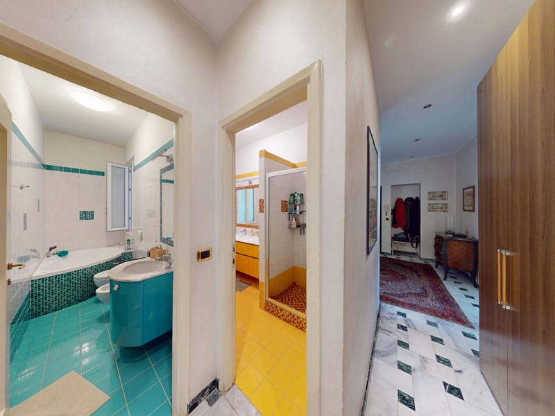 L'immobile, in ottime condizioni interne, è composto da ingresso su disimpegno, doppio soggiorno, cucina abitabile, due camere da letto, terza camera attualmente utilizzata come cabina armadi, doppi servizi entrambi con finestra, comodo ripostiglio, un locale adibito a secondo ripostiglio e zona lavanderia.