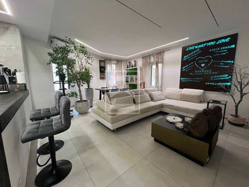 Lappartamento si sviluppa su un unico livello e si distingue per una distribuzione degli spazi moderna ed efficiente. Lingresso introduce a una luminosa zona giorno open space con cucina a vista e isola scorrevole, elemento distintivo dellambiente, pensato per unire funzionalità ed estetica. Le finiture contemporanee, la cura dei dettagli e larmonia degli spazi conferiscono allabitazione un carattere raffinato e immediatamente accogliente.