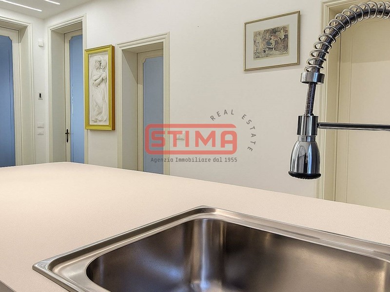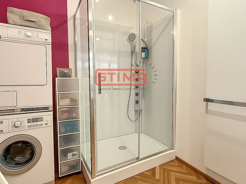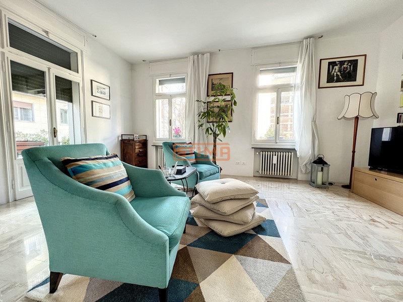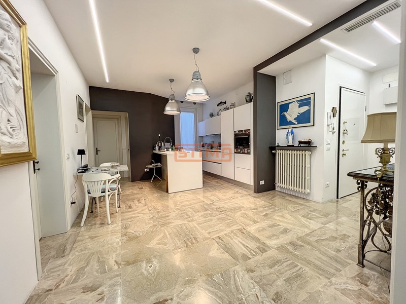 I pavimenti in legno, le altezze di 3 metri, e la canalizzazione dellaria condizionata conferiscono allappartamento un carattere raffinato e contemporaneo.