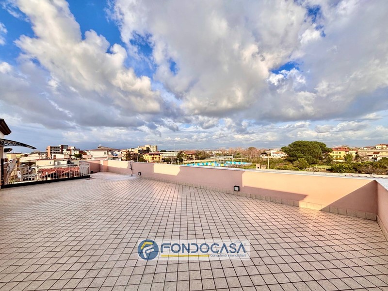 Parliamo di una mansarda di 140 mq interni, con 120 mq di spazi esterni, dove il protagonista assoluto è lui: un terrazzo a livello di circa 90 mq.