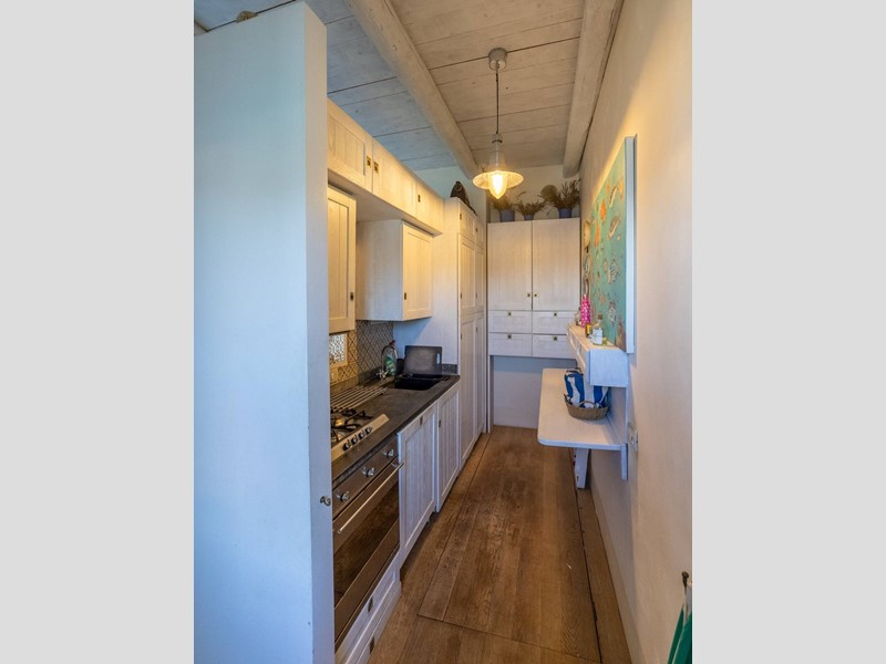 La cucina, funzionale e ben organizzata, è dotata di una comoda zona di servizio/lavanderia a scomparsa.