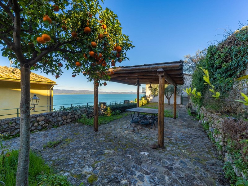 Allesterno, la proprietà offre due deliziosi terrazzini panoramici e un grande giardino curato, autentico punto di forza della casa, dove trascorrere momenti di assoluto relax immersi nella quiete e nella bellezza del paesaggio. Da qui lo sguardo abbraccia un panorama unico che si estende da Orbetello fino alla spiaggia della Feniglia, includendo il porto e il paese.
