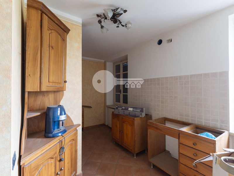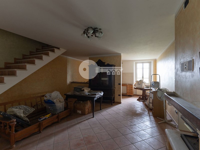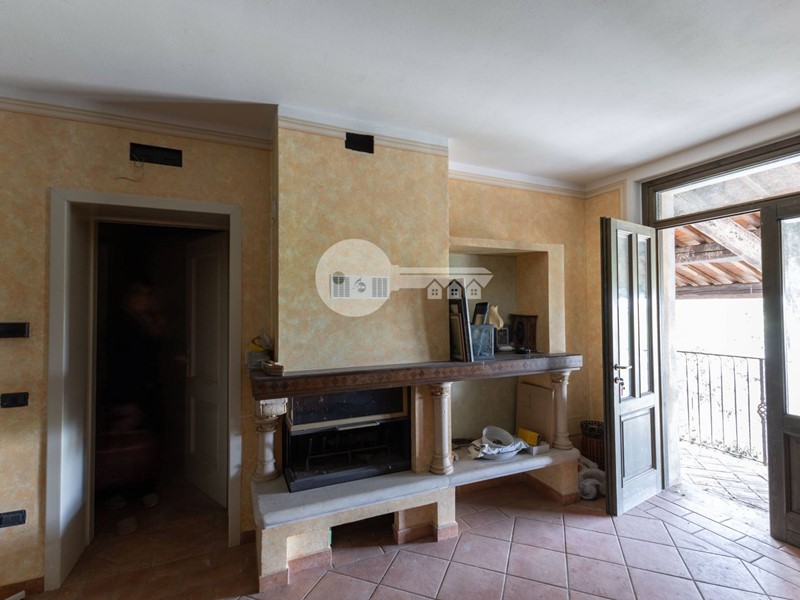 Lingresso si apre su un soggiorno con camino, affiancato da una cucina semi separata e abitabile.