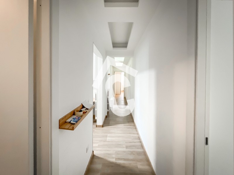 L’ingresso apre su un comodo corridoio che accompagna ai vari ambienti della casa. La zona giorno comprende una cucina con angolo cottura e un accogliente soggiorno, collegato a un vano multiuso, ideale come studio, area relax o spazio hobby, a seconda delle proprie esigenze.