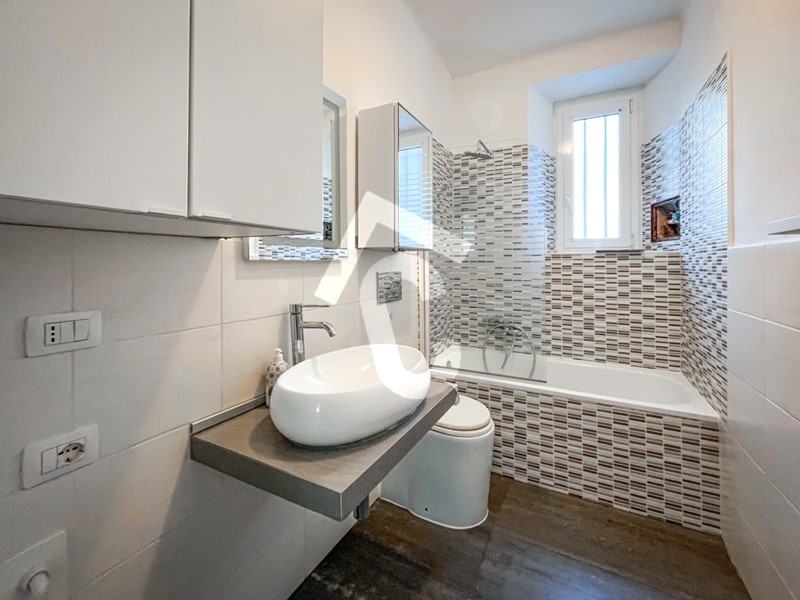 La zona notte ospita due camere da letto, di cui una impreziosita da una pratica cabina armadio, oltre a un bagno funzionale e ben organizzato.