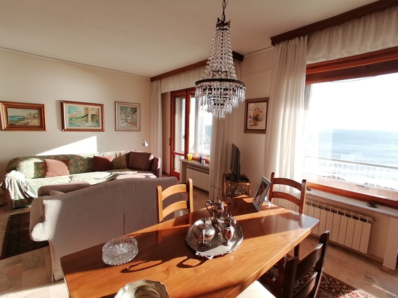 FRONTE MARE! In un contesto tranquillo, ampio appartamento in ordine composto da ingresso, salone doppio, due camere matrimoniali (possibilità di ricavare una terza camera matrimoniale), due bagni, cucina e dispensa. Due balconi di cui uno con esposizione totalmente sul lato mare, dal quale si accede sia dal salone doppio che da una delle due camere. Lastrico solare di proprietà! Ottimo sfogo per i mesi estivi. Completa la proprietà un comodo box auto sito al piano strada dello stesso stabile. SOLUZIONE UNICA!