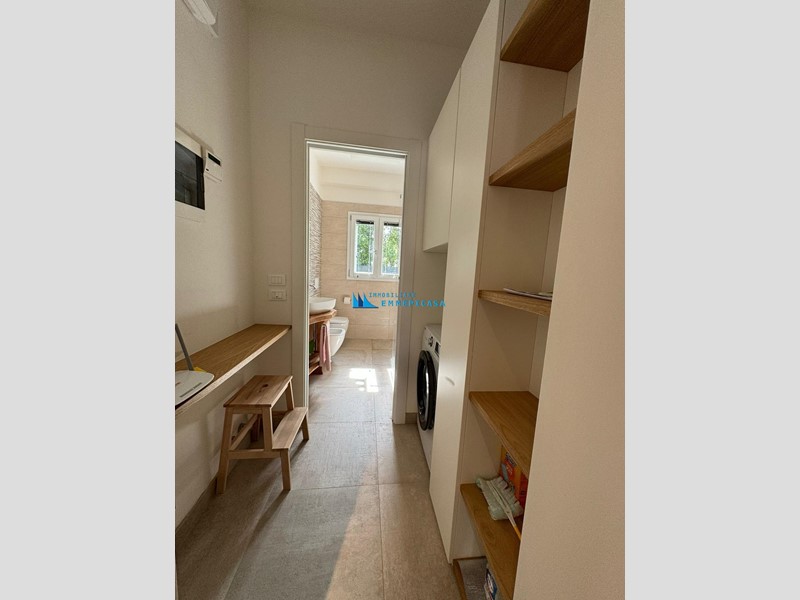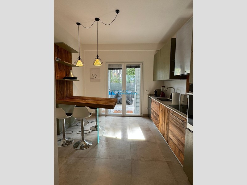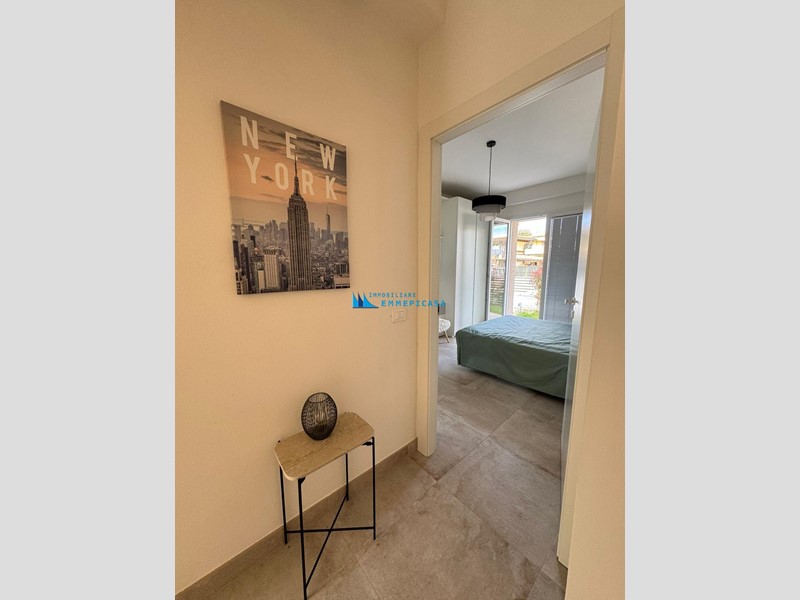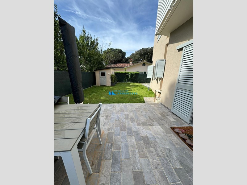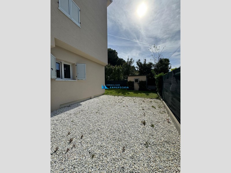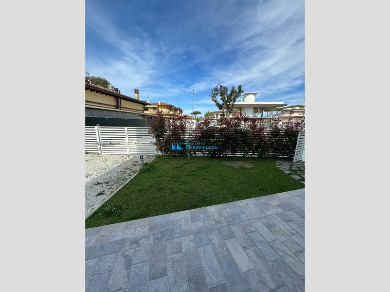 Cinquale. Al confine con Vittoria Apuana e a soli circa 300 metri dal centro e dal mare si affitta per stagione estiva appartamento al piano terra di piccola condominio di nuova costruzione, con giardino privato e posti auto interni.