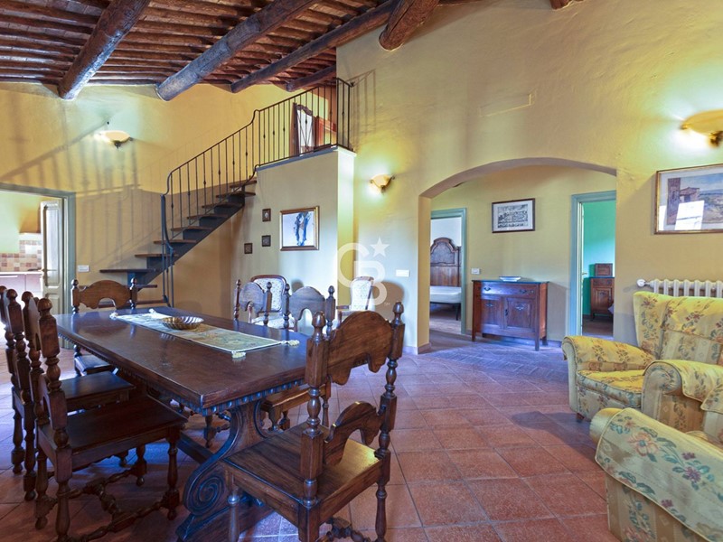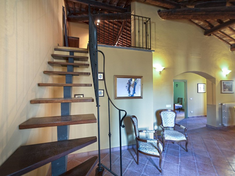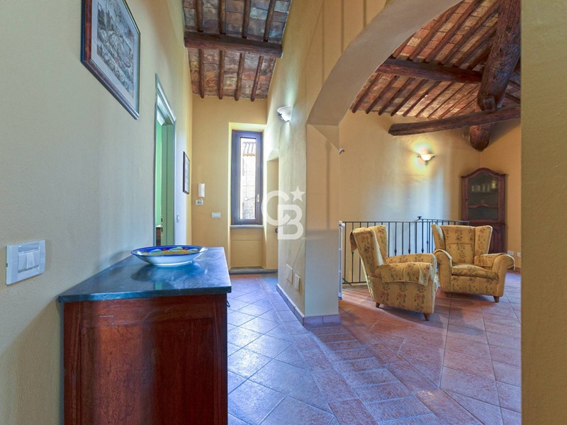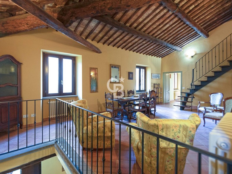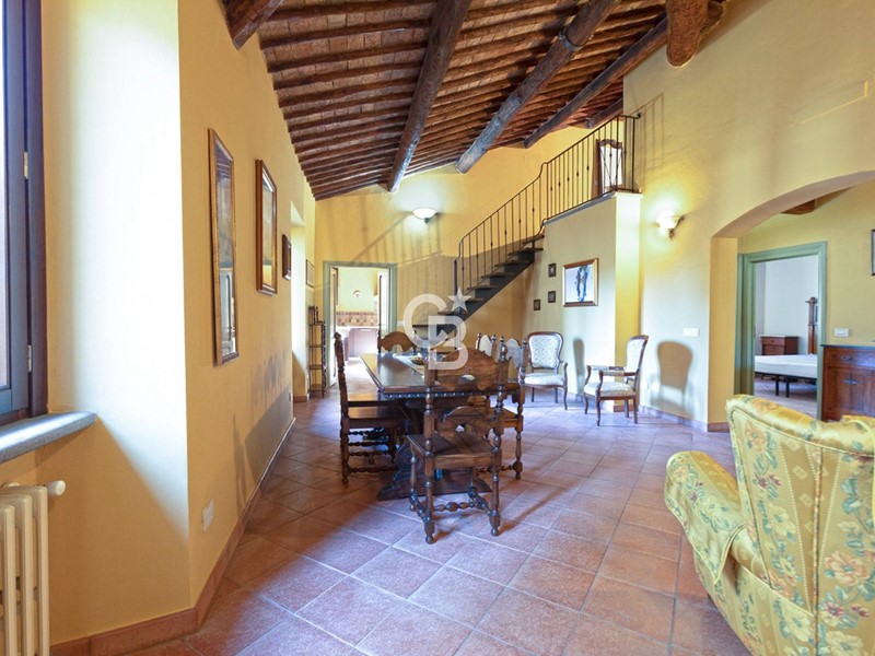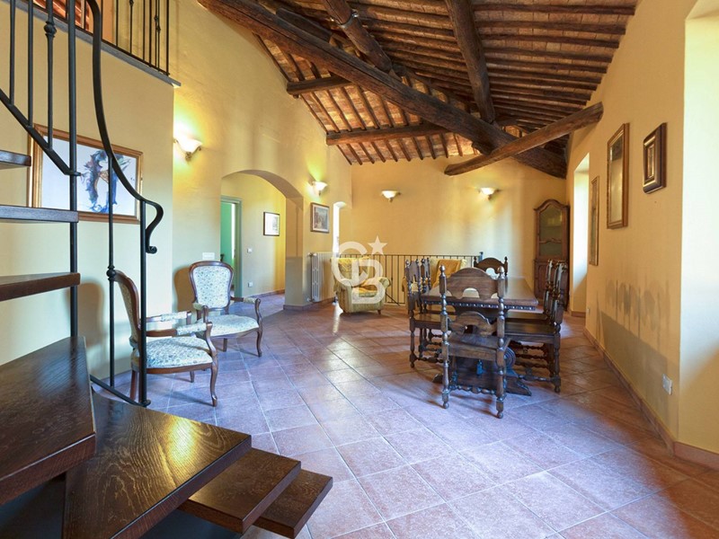 Salendo al primo piano si apre una zona giorno di grande respiro che esalta il carattere dellimmobile valorizzato dalla luce naturale, ampie finestre lasciano entrare infatti una luce morbida, questo spazio si presta sia come soggiorno di rappresentanza sia come grande living familiare. La cucina è abitabile, ben proporzionata e separata, perfetta per chi ama vivere la casa con funzionalità senza rinunciare al comfort. Qui il tetto ha una struttura portante a vista, con travi che si intrecciano in un articolato sistema di incastri e con pianelle a vista.
