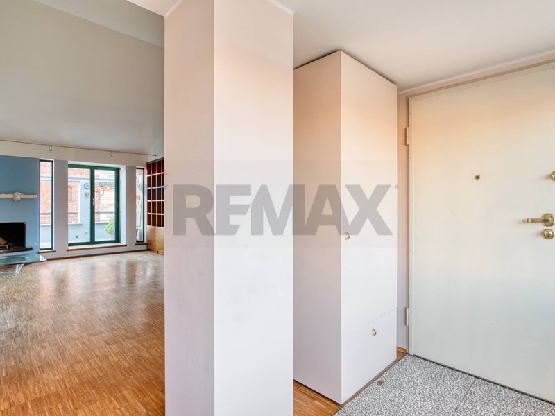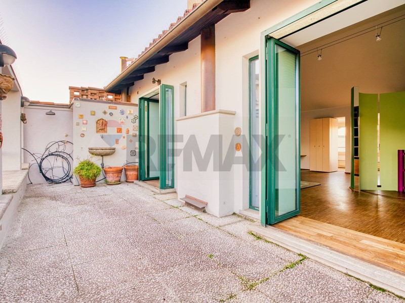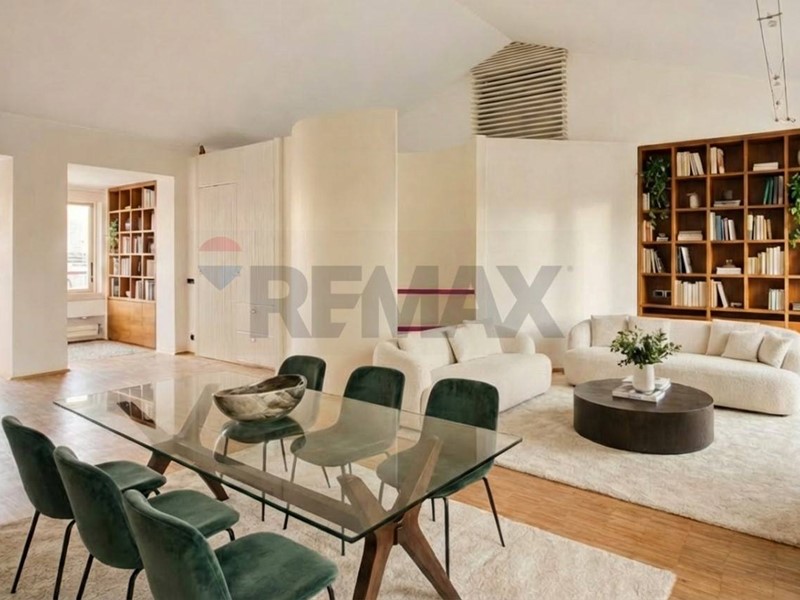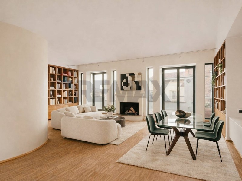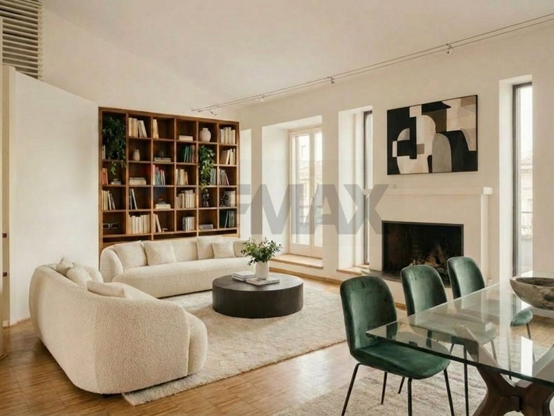 La zona giorno, collocata al quarto ed ultimo piano, si apre su un living di grande impatto, valorizzato da ampie aperture e impreziosito da un camino scenografico, vera opera dartista, che conferisce carattere e unicità allambiente. Da qui si accede direttamente al terrazzo panoramico: uno spazio esterno realmente vivibile, perfetto per aperitivi e cene allaperto o per rilassarsi al sole nel cuore della città.