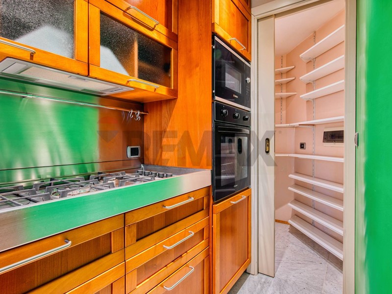 Completano il piano una comoda lavanderia e un ampio disimpegno attrezzato con armadi su misura, soluzione che incrementa in modo significativo funzionalità e capacità di contenimento.