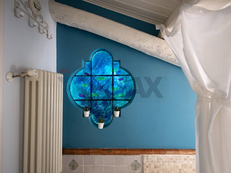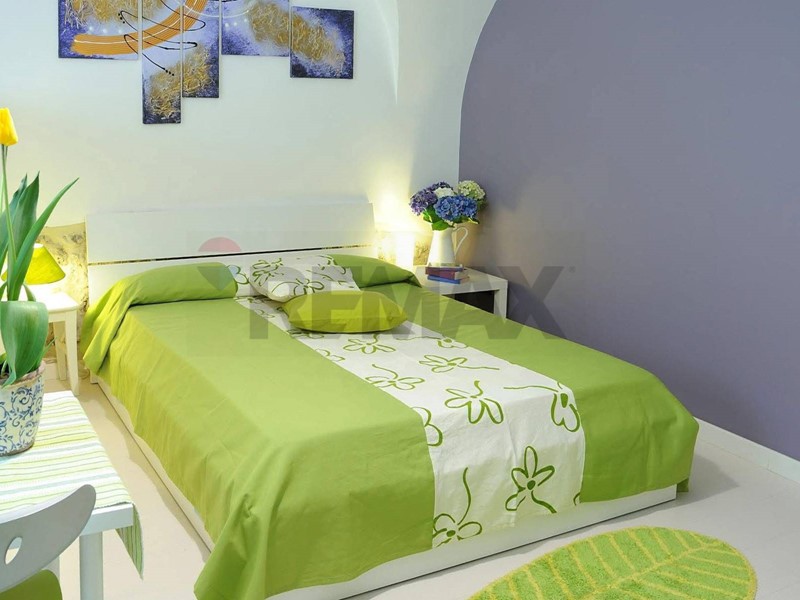 Sullo stesso piano troviamo la zona notte che si sviluppa da un delizioso bagno, anch'esso rifinito in ceramica di Caltagirone con vasca; a seguire ampia camera da letto con annessa zona relax e zona armadi, con finestre velux a soffitto e pareti retroilluminate.