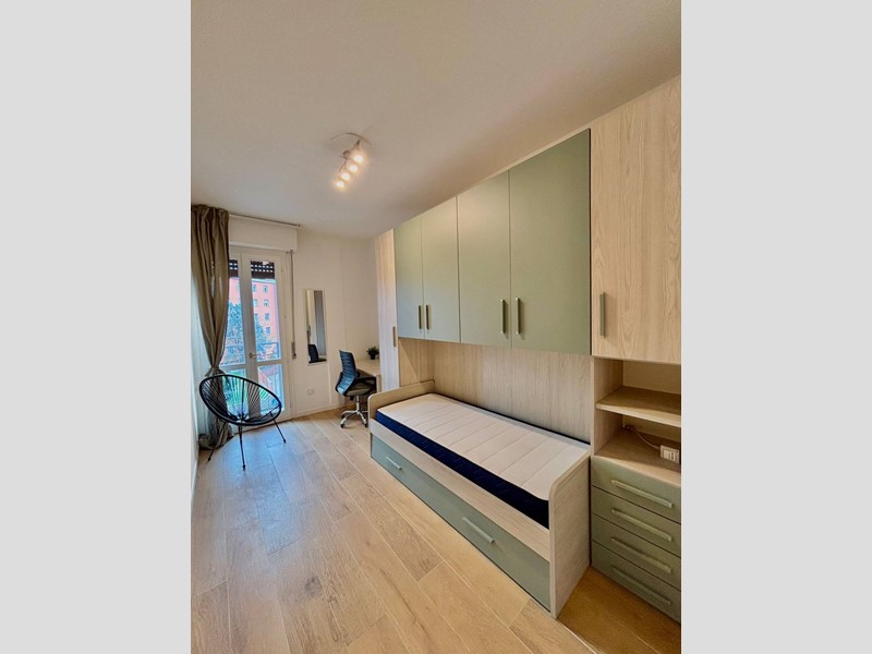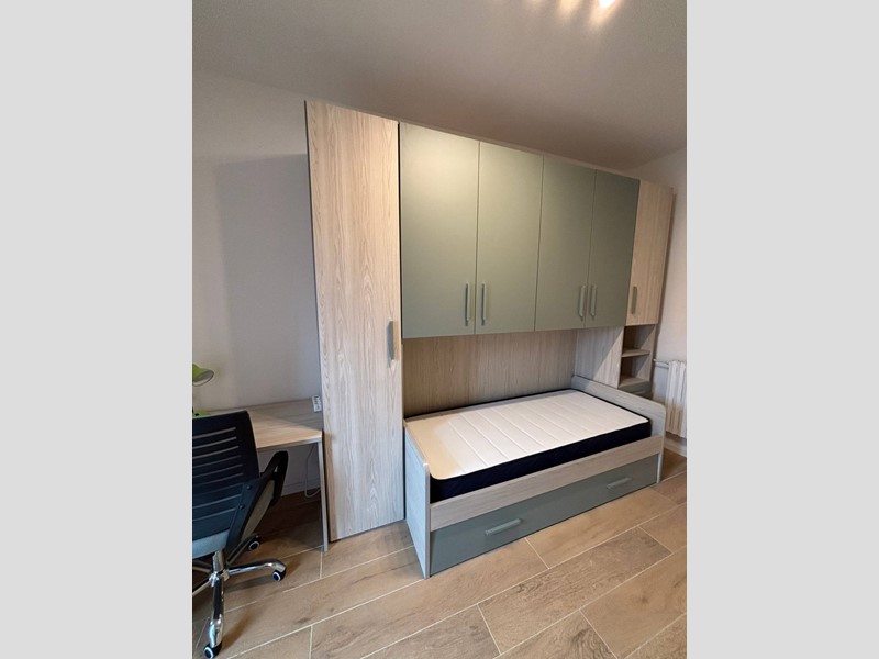 Lappartamento è stato appena arredato tutto a nuovo a Gennaio 2026 con cucina completamente attrezzata, con doppio frigorifero, camere con letti, armadiature e scrivanie, bagni con lavatrice.