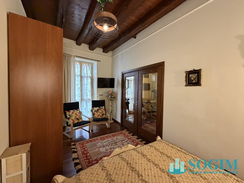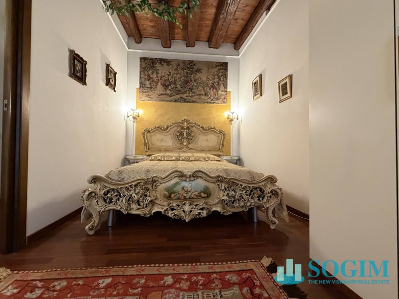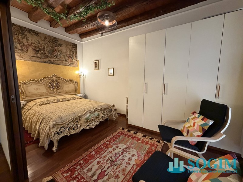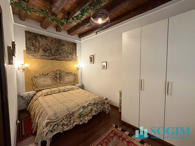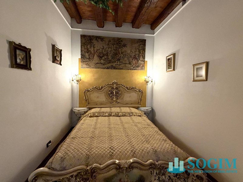 L'appartamento, accessibile dal ballatoio comune che incarna perfettamente lo stile di altri tempi, si apre su una piccola ed accogliente zona giorno con cucina a vista dalla quale si accede alla camera matrimoniale in cui domina un suggestivo soffitto a cassettoni che dona all'ambiente un tepore dal gusto rinascimentale.