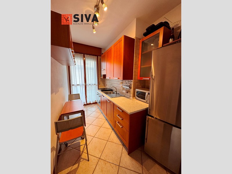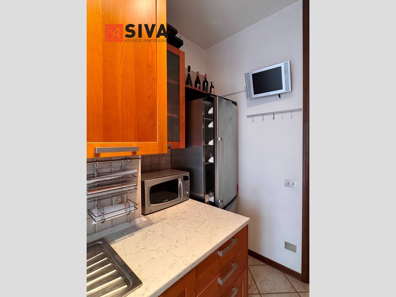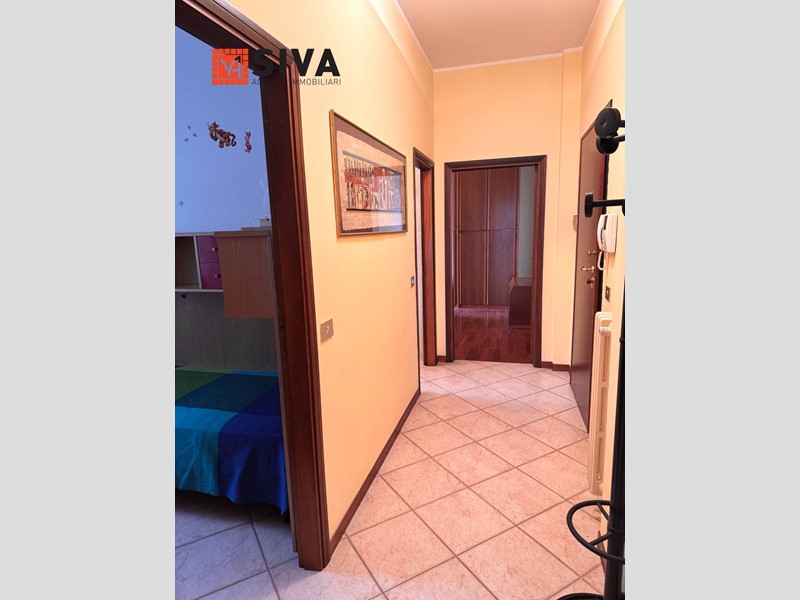ingresso in corridoio, ampio soggiorno con due porte finestra che accedono a bel terrazzo abitabile e coperto, cucina separata (anch'essa con apertura sul terrazzo), studio, bagno finestrato, ampia camera matrimoniale con affaccio su secondo terrazzo abitabile affacciato sul verde del cortile condominiale.