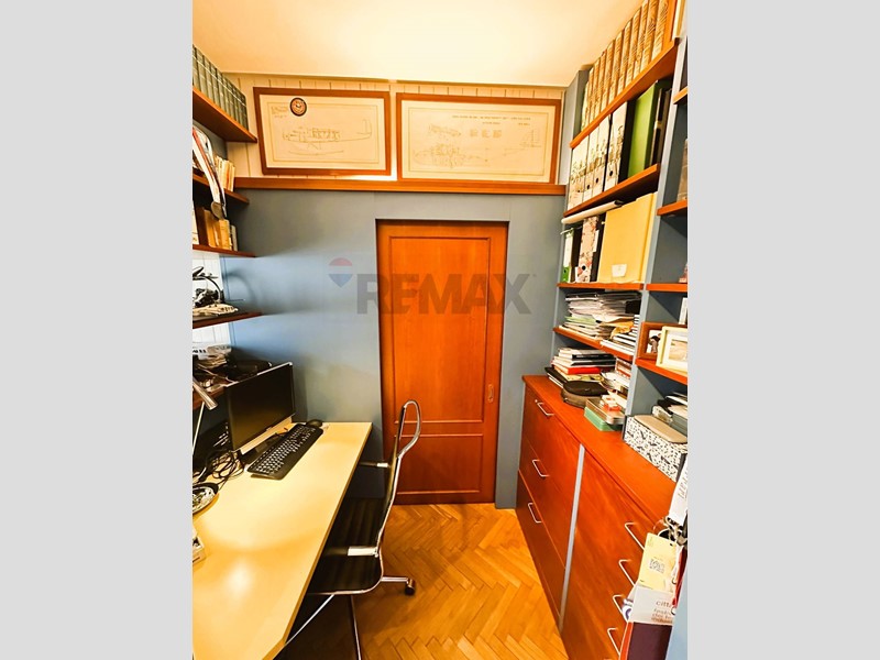 Lingresso con disimpegno conduce a un soggiorno doppio ampio e rappresentativo, ideale per accogliere ospiti o vivere momenti di convivialità, uno studio e una cucina abitabile spaziosa e funzionale.
