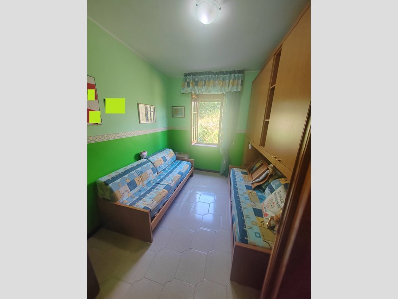 L'abitazione è così suddivisa: ingresso, sala/soggiorno, cucina abitabile con camino, 2 bagni, 1 camera matrimoniale, 2 camerette, balconi.