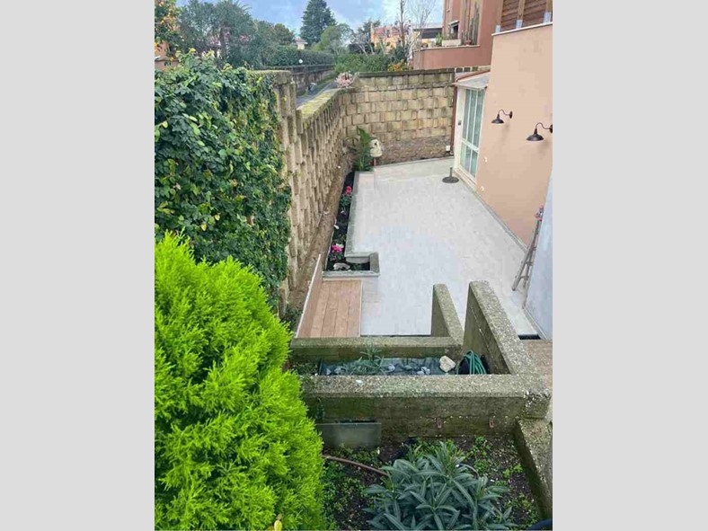 L'appartamento, completamente indipendente ed inserito in un contesto signorile e tranquillo, fa parte di una grande villa, è luminoso con porte-finestre presenti in ogni ambiente principale della casa con affaccio su due ampi terrazzi privati. Si accede tramite una scala con fioriere.