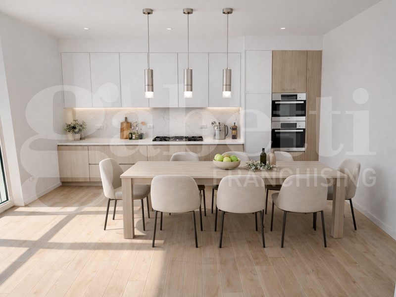 In contesto residenziale di recente costruzione, appartamento al primo piano di 135 mq (commerciali) in Classe Energetica A, dotato di terrazzo di 30 mq. L'immobile presenta tecnologie moderne, impianti completi e finiture di livello elevato.