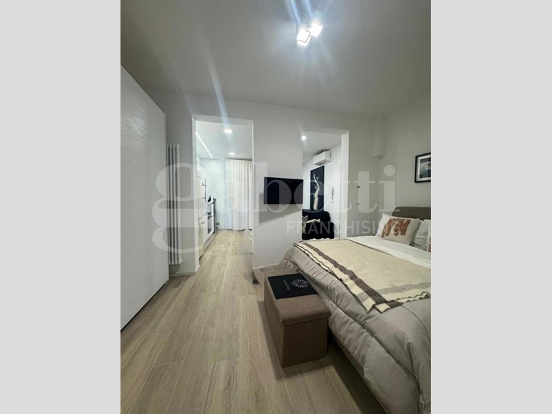 La zona notte comprende una camera matrimoniale, mentre gli spazi sono completati da un comodo ripostiglio/lavanderia e da un bagno moderno, rifinito con materiali contemporanei.