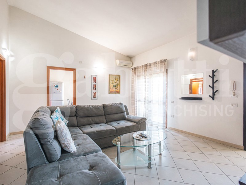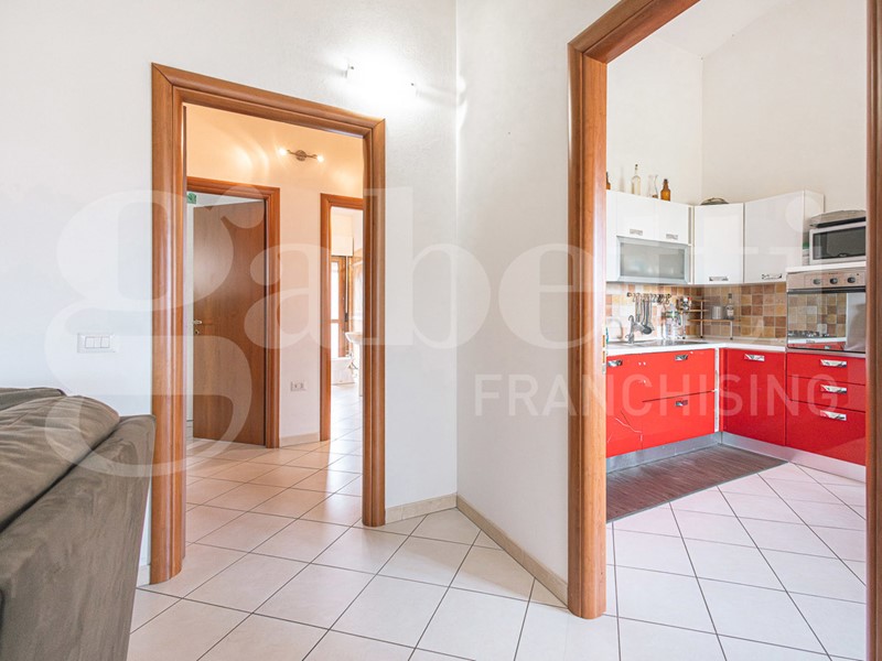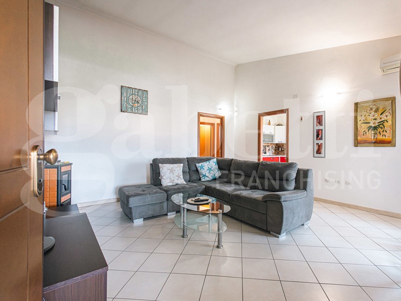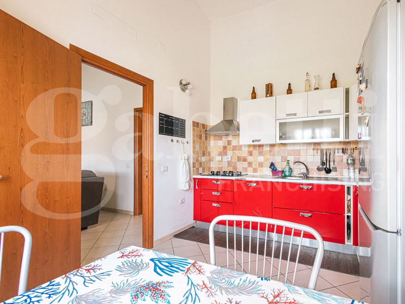 Dal pianerottolo condominiale accediamo all'appartamento, dove vi è l'ingresso sulla zona living suddivisa in soggiorno e cucina abitabile con veranda di comoda metratura.