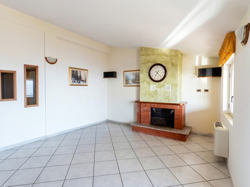 L'ampia zona living con camino è il cuore pulsante della casa.